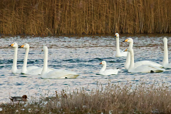 Whooper Swans with Snow Goose Deeping LakesJanuary 2026The regular swan flocks were quite widespread this year, I have encountered several large flocks from the Welney area to Peterborough, and Bewick's seem to be in good numbers.