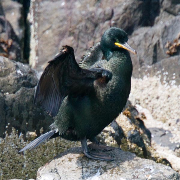 non-breeding and immature birds can superficially resemble Great Cormorants, with which they are often found, the jizz is quite different, Shag has a much slenderer bill and neck, and dives differently.