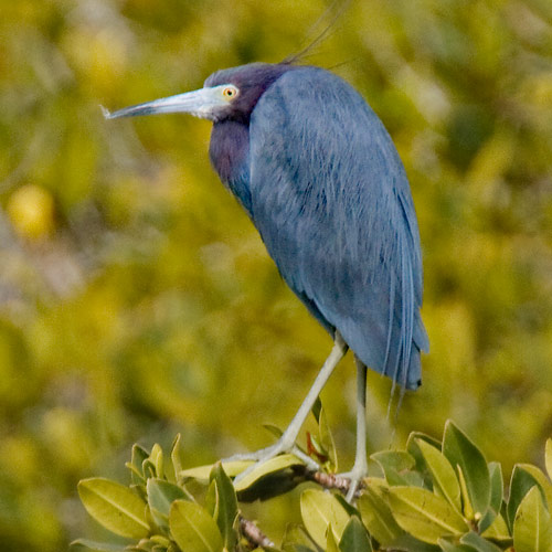 inviting confusion with Snowy Egret. Adult birds are unmistakeable, with a purplish
